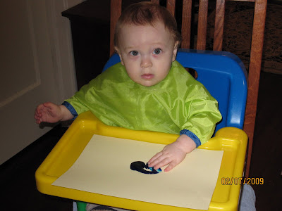 First time finger painting. He loved it. He mushed his hands it and decorated three different pages with color. Swish, swish, swish went his hands and side to side. Yes he even tried to eat it, just a little.